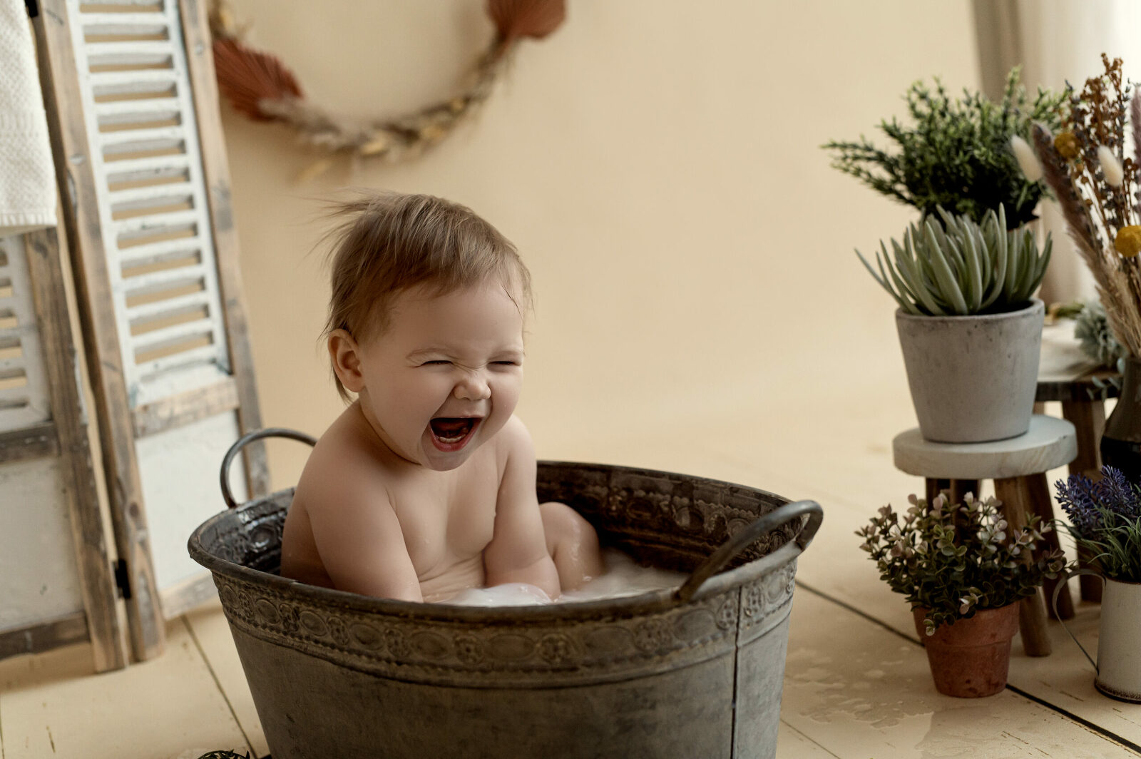 Für ein Badeshooting sollte dein Baby auf jeden Fall sicher sitzen können, dass ist dann meist mit 9 Monaten der Fall. Da die Badewannen irgendwann zu klein werden, sollte dein Baby - bei normaler Körpergrösse - maximal 1.5 Jahre alt sein.