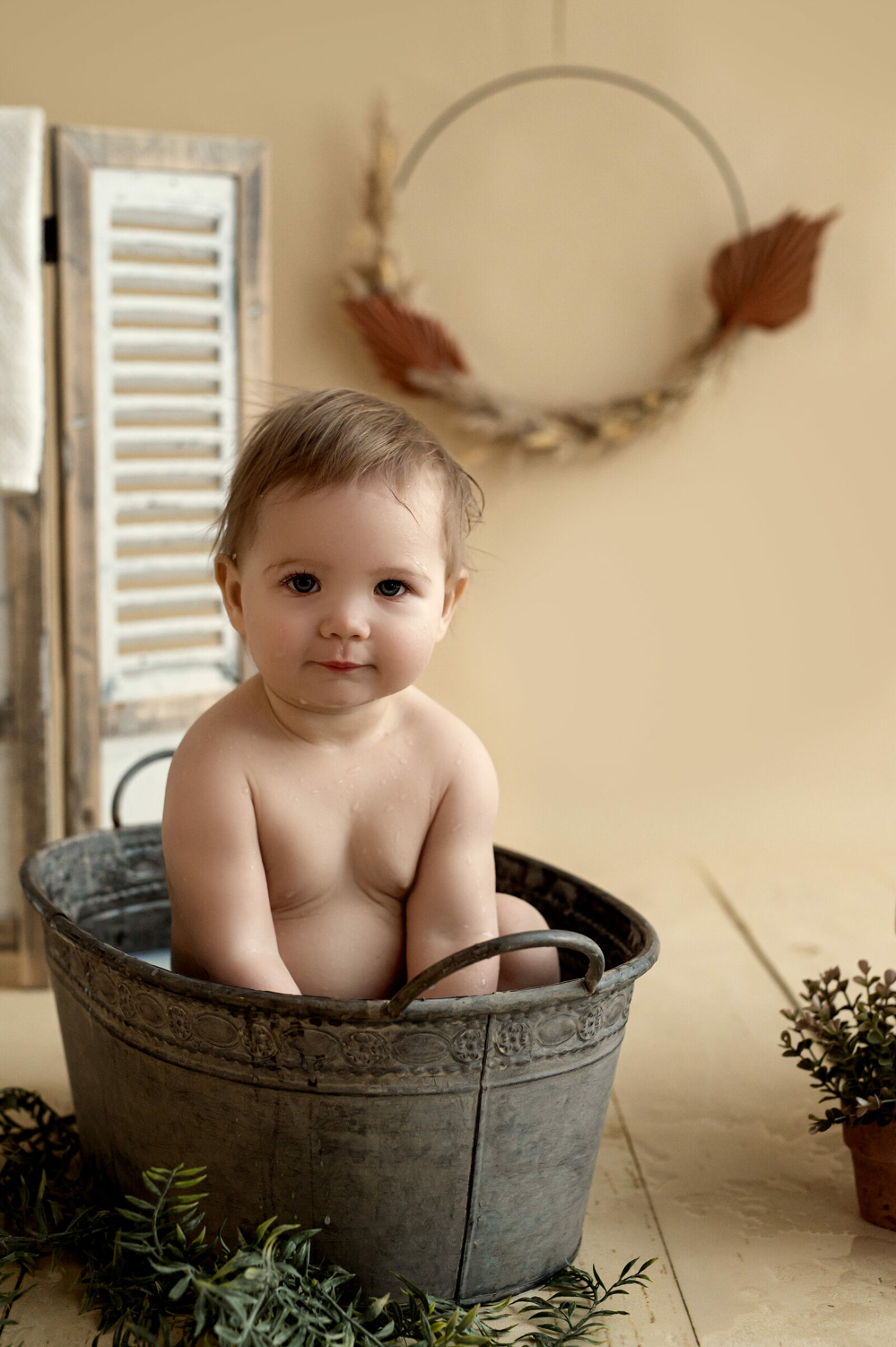 Dein Baby badet gerne? Dann ist das Badeshooting für dein Baby sicher ein ganz besonderes Highlight. In einer Badewanne passend für dein Baby darf es spritzen und planschen. Das Studio ist natürlich wohlig warm. .Föhn und Handtücher sind ebenso parat. Eine Kombination von "trockenen" Bilder auf dem Bett und dem Badeshooting ist ab dem Paket "Basic" möglich.